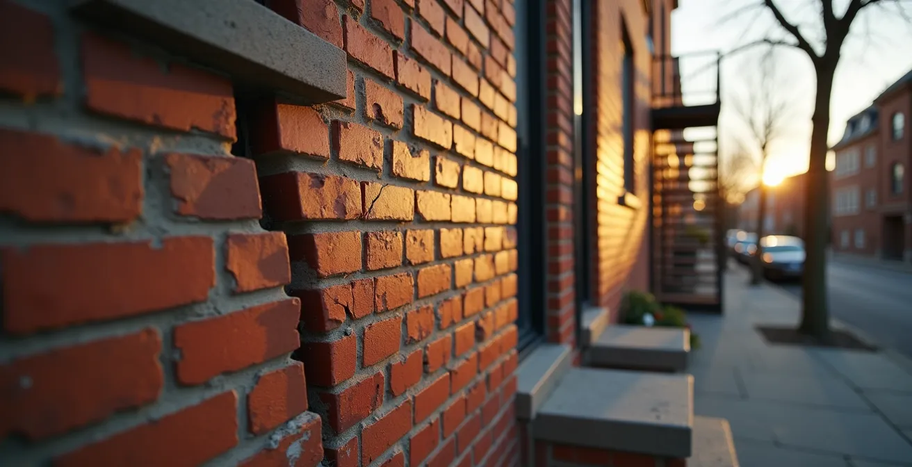 - Une fissure en escalier sur un mur de briques est le symptôme quasi certain d’un affaissement structurel (tassement différentiel) et ne doit jamais être ignorée.